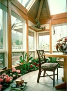 terrain of the mountainside where the house is built. The 180 degree view is captured by wide expanses of glass which helps to bring the outdoors in. The Solarium features an interior border of plants which make it seem like Spring year-round.