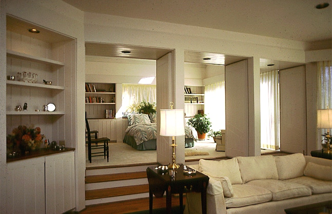 Designed for the architect's extended family, this four bedroom two story residence creates an experience of openness and privacy orchestrated by form, spatial relationships, sunlight, utility and fun. Organized for one floor living, the master bedroom suite can be expanded to open to the living room